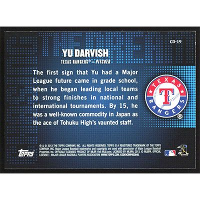 This is a 2013 Topps Chasing the Dream Yu Darvish baseball card. The card is #CD-19 and pictures show condition.