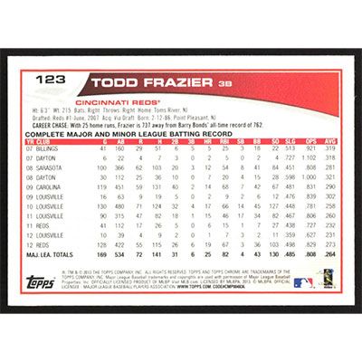 This is a 2013 Topps Chrome Todd Frazier baseball card. The card is #123 and pictures show condition.
