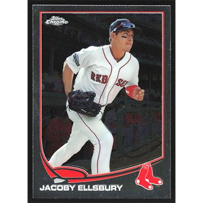 This is a 2013 Topps Chrome Jacoby Ellsbury baseball card. The card is #204 and pictures show condition.