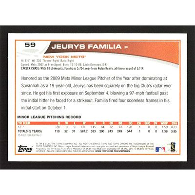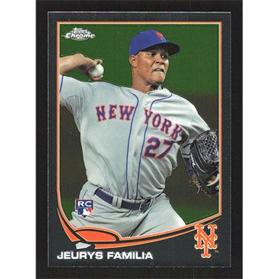 This is a 2013 Topps Chrome Jeurys Familia baseball card. The card is #59 and pictures show condition.