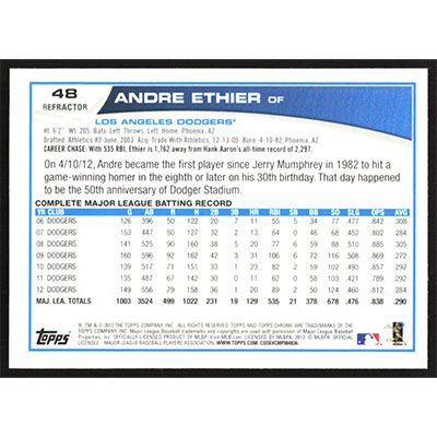 This is a 2013 Topps Chrome Orange Refractors Andre Ethier baseball card. The card is #48 and pictures show condition.