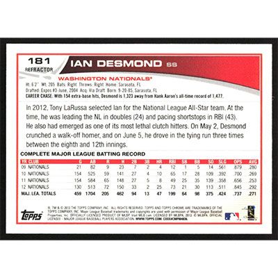 This is a 2013 Topps Chrome X-Fractors Ian Desmond baseball card. The card is #181 and pictures show condition.