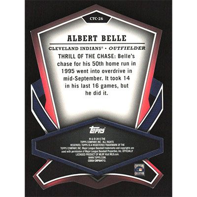 This is a 2013 Topps Cut to the Chase Albert Belle baseball card. The card is #CTC-26 and pictures show condition.