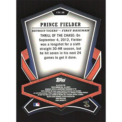 This is a 2013 Topps Cut to the Chase Prince Fielder baseball card. The card is #CTC-38 and pictures show condition.
