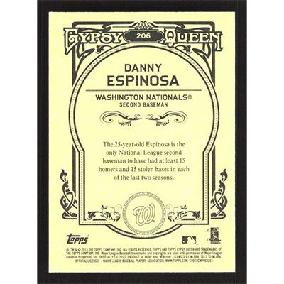 This is a 2013 Topps Gypsy Queen Danny Espinosa baseball card. The card is #206 and pictures show condition.