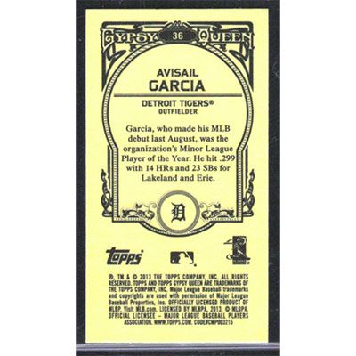 This is a 2013 Topps Gypsy Queen Mini Avisail Garcia baseball card. The card is #36 and pictures show condition. Team(s): Detroit Tigers Rookie Card (RC)