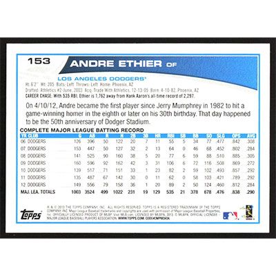 This is a 2013 Topps Opening Day Andre Ethier baseball card. The card is #153 and pictures show condition.