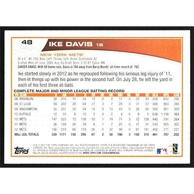 This is a 2013 Topps Opening Day Ike Davis baseball card. The card is #48 and pictures show condition.