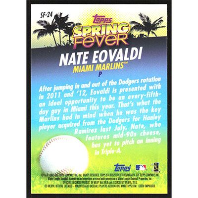 This is a 2013 Topps Spring Fever Nate Eovaldi baseball card. The card is #SF-24 and pictures show condition.