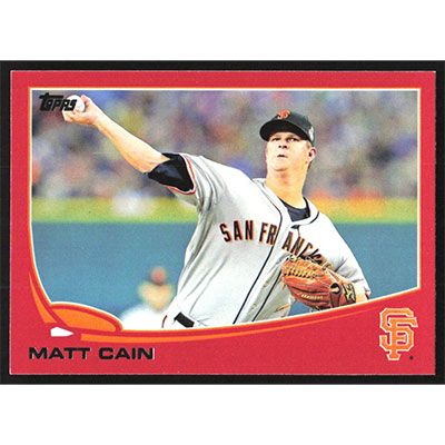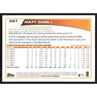 This is a 2013 Topps Target Red Matt Cain baseball card. The card is #587 and pictures show condition.