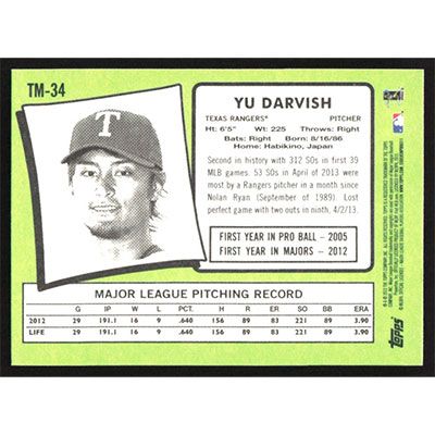 This is a 2013 Topps Update '71 Minis Yu Darvish baseball card. The card is #TM-34 and pictures show condition.