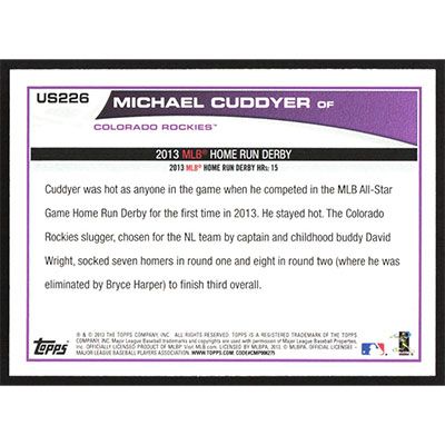 This is a 2013 Topps Update Michael Cuddyer Home Run Derby baseball card. The card is #US226 and pictures show condition.