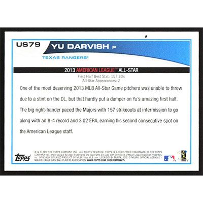 This is a 2013 Topps Update Yu Darvish All-Star baseball card. The card is #US79 and pictures show condition.