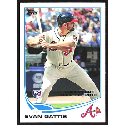 This is a 2013 Topps Update Evan Gattis Rookie Debut baseball card. The card is #US87 and pictures show condition. Team(s): Atlanta Braves Rookie Card (RC)