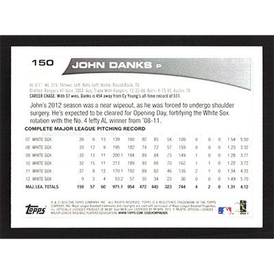 This is a 2013 Topps Wal-Mart Blue John Danks baseball card. The card is #150 and pictures show condition.