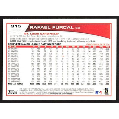 This is a 2013 Topps Wal-Mart Blue Rafael Furcal baseball card. The card is #315 and pictures show condition.