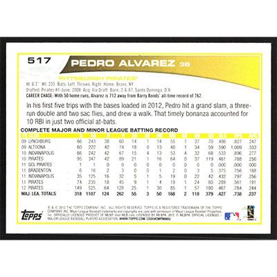 This is a 2013 Topps Wal-Mart Blue Pedro Alvarez baseball card. The card is #517 and pictures show condition.