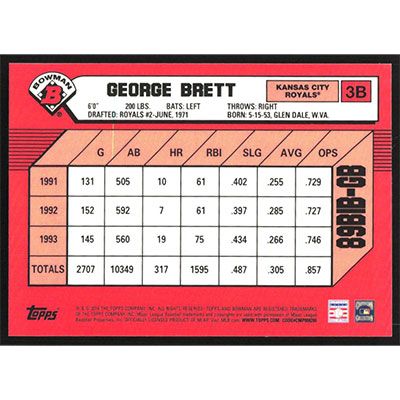 This is a 2014 Bowman '89 Bowman is Back Silver Diamond Refractors George Brett baseball card. The card is #89BIB-GB and pictures show condition. Team(s): Kansas City Royals