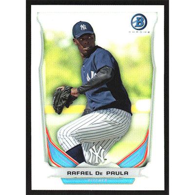 This is a 2014 Bowman Chrome Bowman Scout Top 5 Mini Refractors Rafael De Paula baseball card. The card is #BM-NYY4 and pictures show condition. Team(s): New York Yankees