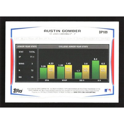 This is a 2014 Bowman Draft Austin Gomber baseball card. The card is #DP109 and pictures show condition.
