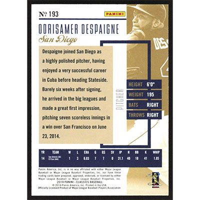 This is a 2014 Classics Odrisamer Despaigne baseball card. The card is #193 and pictures show condition.