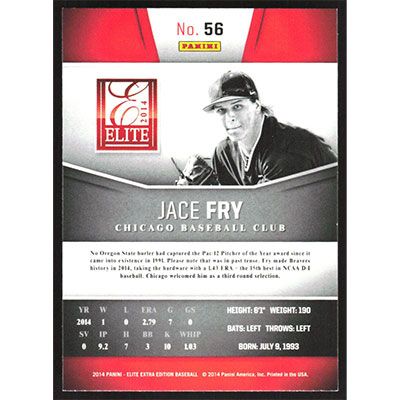 This is a 2014 Elite Extra Edition Jace Fry baseball card. The card is #56 and pictures show condition.