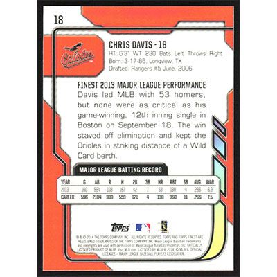 This is a 2014 Finest Chris Davis baseball card. The card is #18 and pictures show condition.