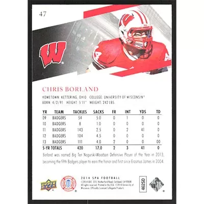 This is a 2014 SP Authentic Chris Borland football card. The card is #47 and pictures show condition.