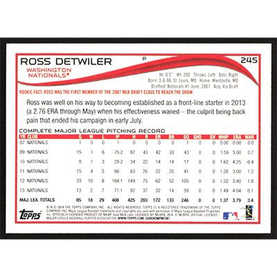 This is a 2014 Topps Ross Detwiler baseball card. The card is #245 and pictures show condition.