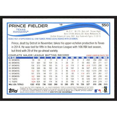 This is a 2014 Topps Prince Fielder baseball card. The card is #550 and pictures show condition.
