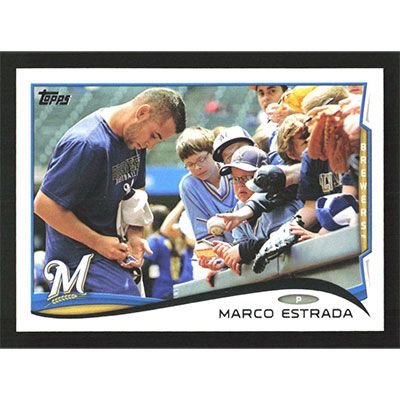 This is a 2014 Topps Marco Estrada baseball card. The card is #598 and pictures show condition.