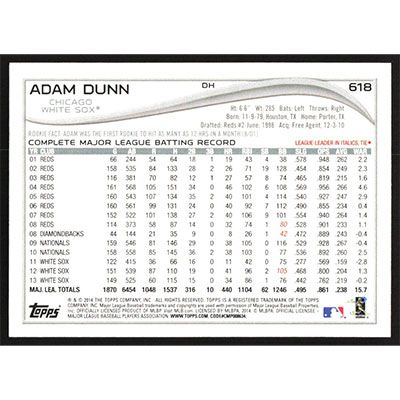 This is a 2014 Topps Adam Dunn baseball card. The card is #618 and pictures show condition.
