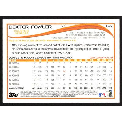 This is a 2014 Topps Dexter Fowler baseball card. The card is #622 and pictures show condition.