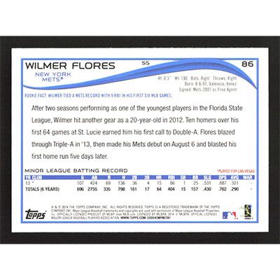 This is a 2014 Topps Wilmer Flores baseball card. The card is #86 and pictures show condition.