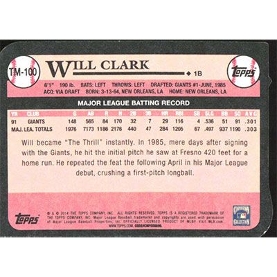This is a 2014 Topps '89 Die Cut Minis Will Clark baseball card. The card is #TM-100 and pictures show condition.