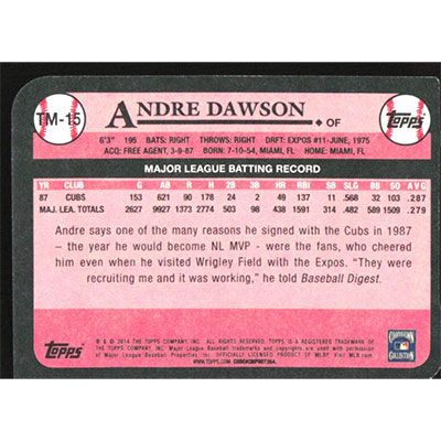 This is a 2014 Topps '89 Die Cut Minis Andre Dawson baseball card. The card is #TM-15 and pictures show condition.