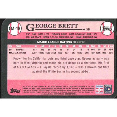 This is a 2014 Topps '89 Die Cut Minis George Brett baseball card. The card is #TM-18 and pictures show condition.