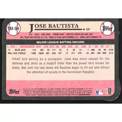 This is a 2014 Topps '89 Die Cut Minis Jose Bautista baseball card. The card is #TM-94 and pictures show condition.