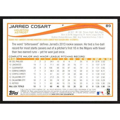 This is a 2014 Topps Jarred Cosart Future Stars baseball card. The card is #89 and pictures show condition.