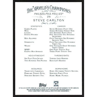This is a 2014 Topps Allen & Ginter Steve Carlton baseball card. The card is #279 and pictures show condition.
