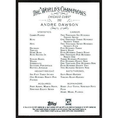 This is a 2014 Topps Allen & Ginter Andre Dawson baseball card. The card is #292 and pictures show condition.