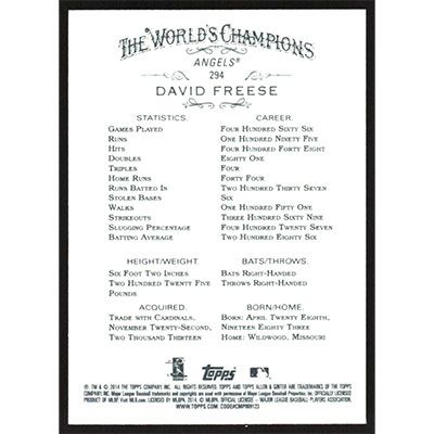 This is a 2014 Topps Allen & Ginter David Freese baseball card. The card is #294 and pictures show condition.