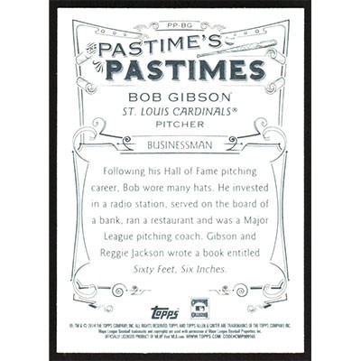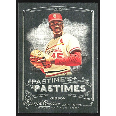 This is a 2014 Topps Allen & Ginter Pastime's Pastime Bob Gibson baseball card. The card is #PP-BG and pictures show condition. Team(s): St. Louis Cardinals
