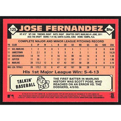 This is a 2014 Topps Archives Jose Fernandez baseball card. The card is #125 and pictures show condition.