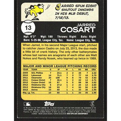 This is a 2014 Topps Archives Jarred Cosart baseball card. The card is #13 and pictures show condition.