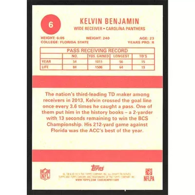 This is a 2014 Topps Chrome 1963 Minis Kelvin Benjamin football card. The card is #6 and pictures show condition.
