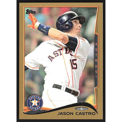 This is a 2014 Topps Gold Jason Castro baseball card. The card is #145 and pictures show condition. This card is limited; #'d 0394/2014. Team(s): Houston Astros