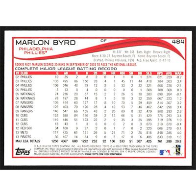 This is a 2014 Topps Green Marlon Byrd baseball card. The card is #484 and pictures show condition.