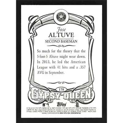 This is a 2014 Topps Gypsy Queen Jose Altuve baseball card. The card is #178 and pictures show condition.