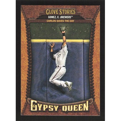 This is a 2014 Topps Gypsy Queen Glove Stories Carlos Gomez baseball card. The card is #GS-CG and pictures show condition.